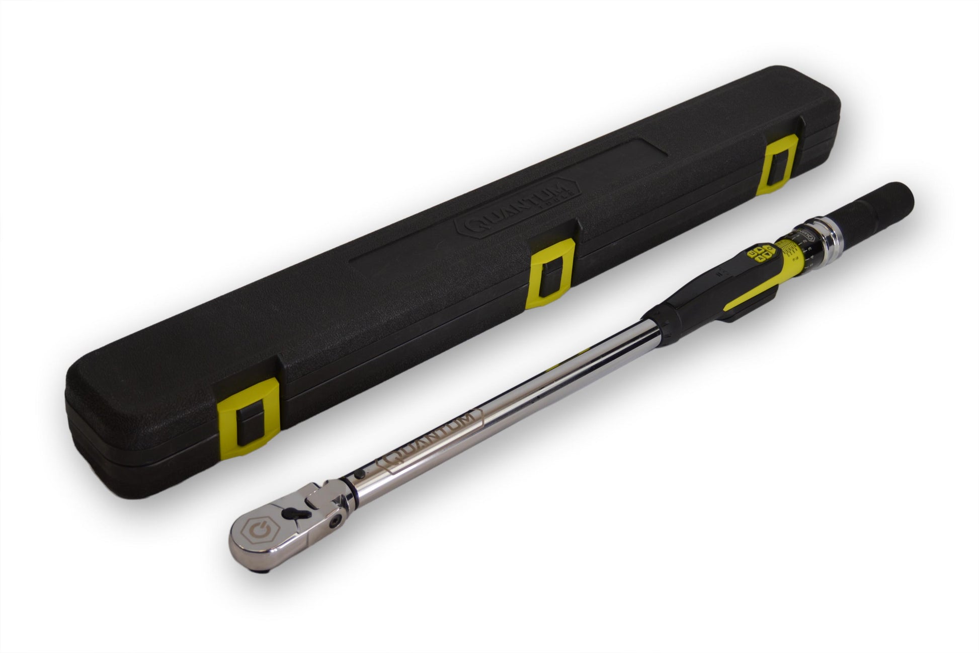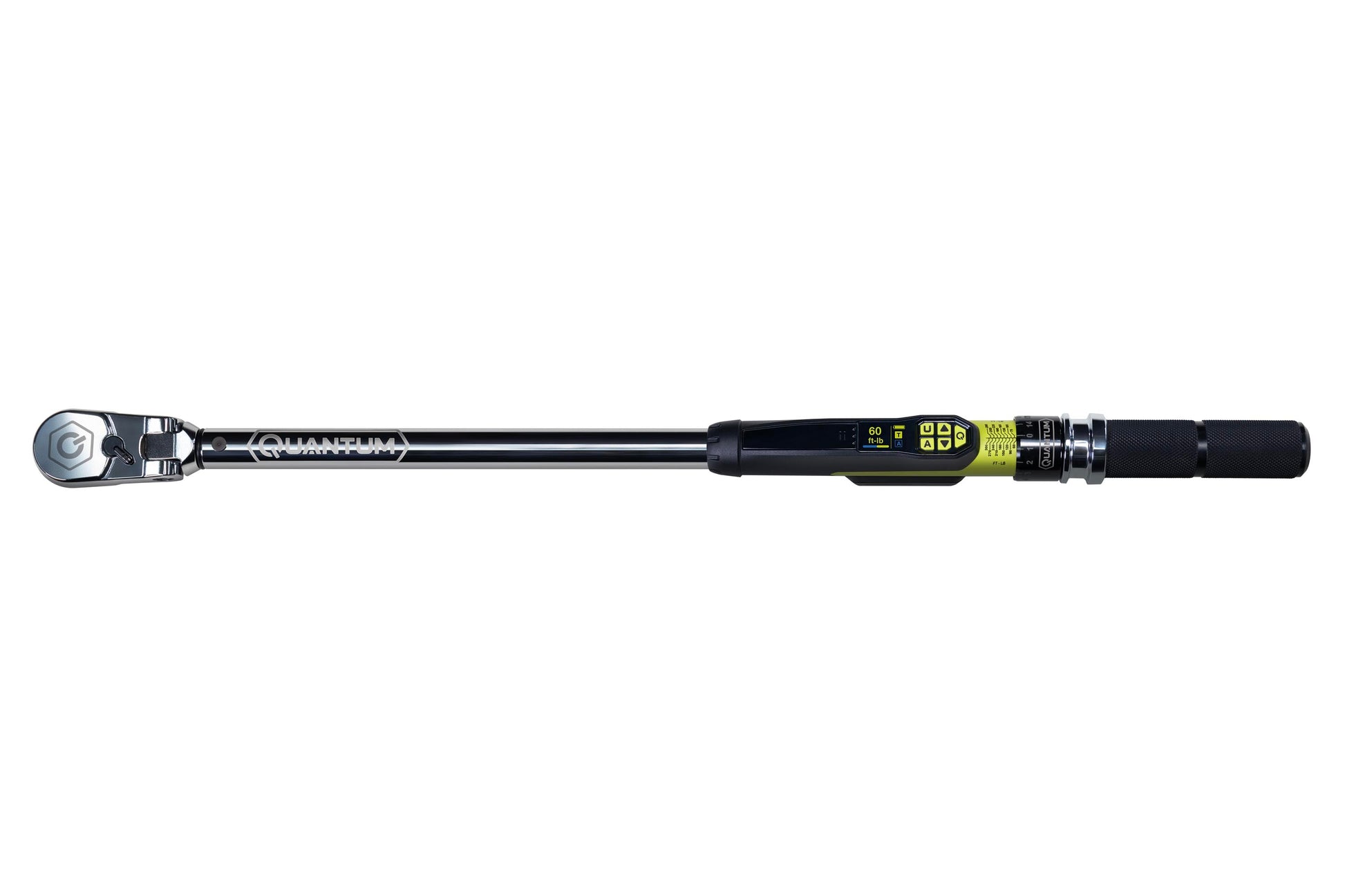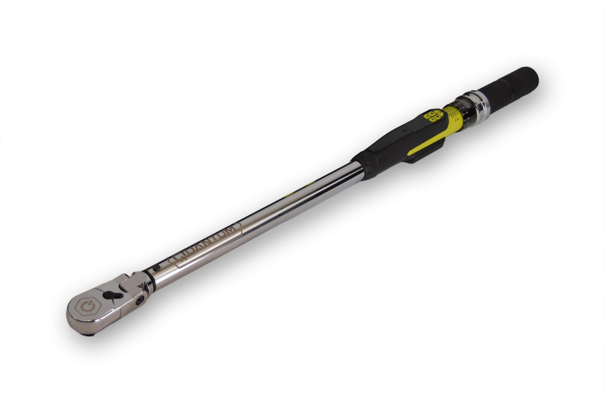 Introducing the Click2Angle from Quantum Tools. Part clicker, part digital, it's the first hybrid torque wrench, offering the best combination of speed and angle accuracy. To use the Click2Angle, set the target torque with the adjustment handle, then confidently turn the fastener until you feel the click. Afterward, effortlessly switch to angle mode using the digital display panel—no external torque angle meter necessary.