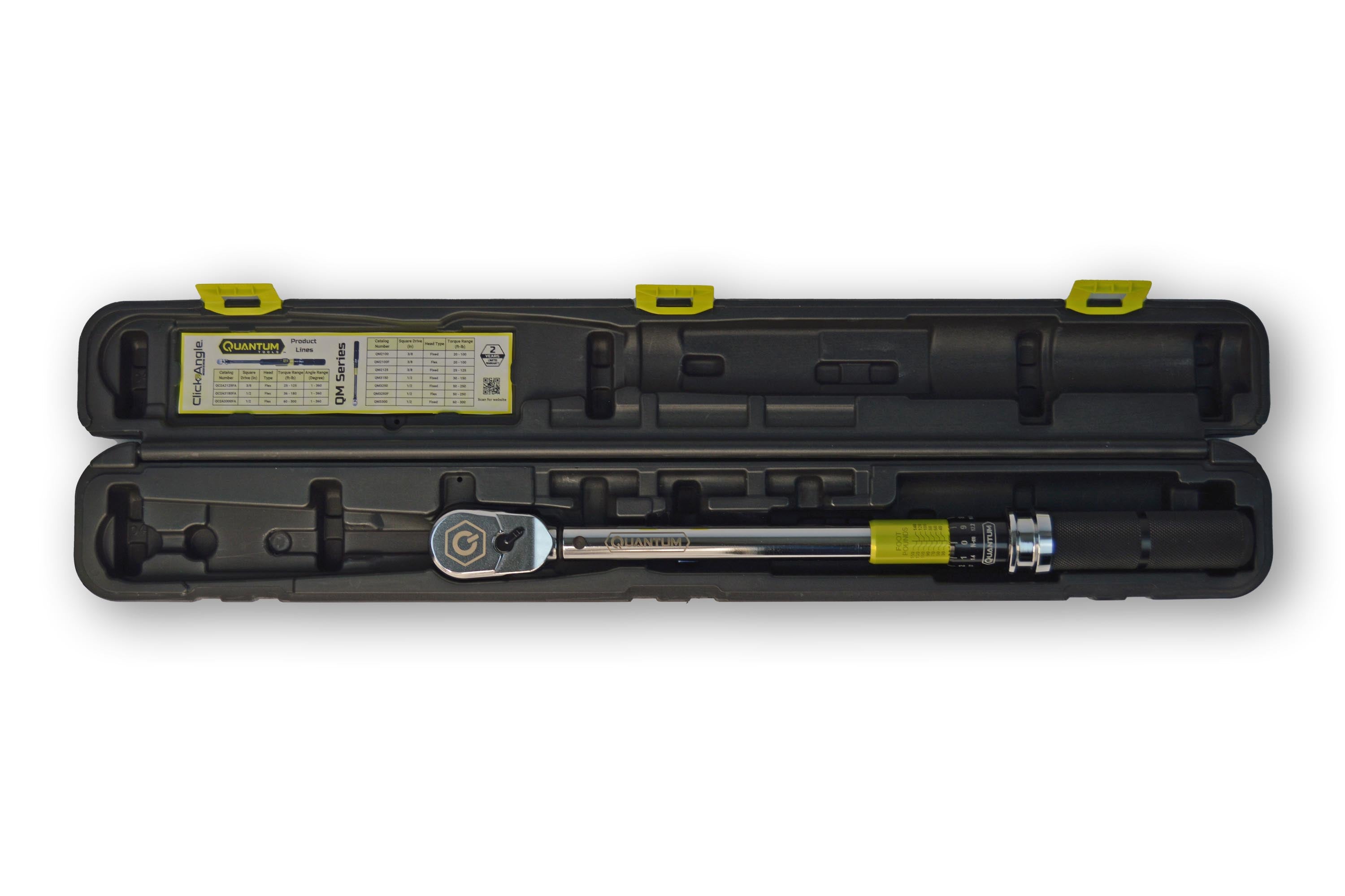 This series is available in ⅜-inch and ½-inch extended torque range models with maximum torque capacities of 125 ft-lb and 300 ft-lb, respectively. The QM Series is designed to tackle a wide range of applications while meeting the industry's latest standards. Get the performance you need with the quality and value you expect from Quantum Tools.